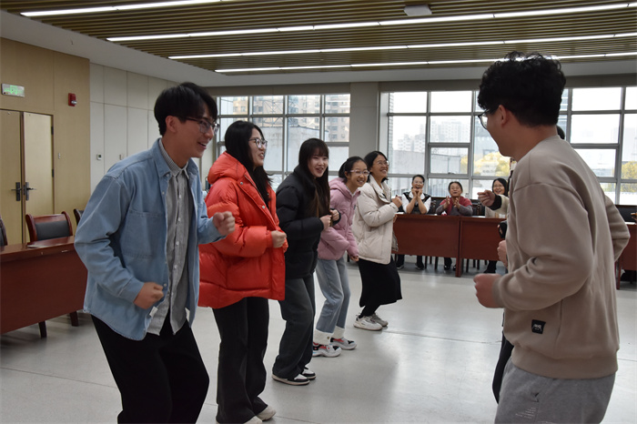 随后进行的互动游戏环节更是将现场气氛推向了高潮。在“朋心合力”游戏中,师生们默契配合,学生表演老师猜,老师表演学生猜,共同完成一组组生动有趣的词语。“螃蟹扭一扭”通过集体表演将师生们的阵阵欢笑声传遍会场的每个角落。在场师生纷纷表示,在此次联谊活动深切体会到了团结协作的力量。