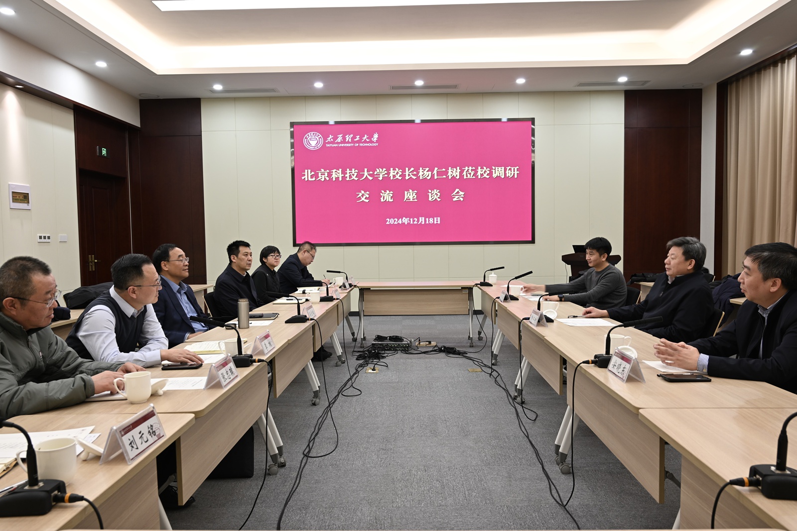 12月18日,北京科技大学校长杨仁树一行来我校调研,并在迎西校区会议中心二层会议室座谈交流。校党委书记沈兴全,校长孙宏斌会见杨仁树一行,校党委常委、副校长王志华出席座谈会。相关部门(单位)负责人参加座谈。
